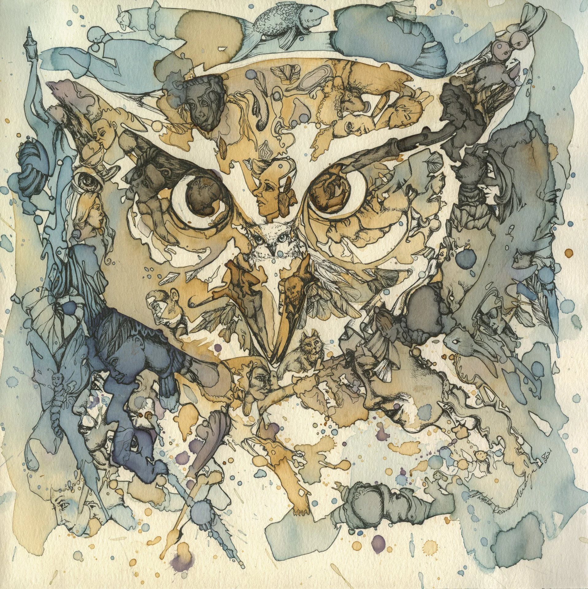 Coffee Art Shop › Night Owl Fine Art Print Image 1 of 1 Night Owl Fine Art Print $75.00 Fine Art 12"x12" print of Owl in coffee and tea on paper Purchase Added! Fine Art 12"x12" print of Owl in coffee and tea on paper